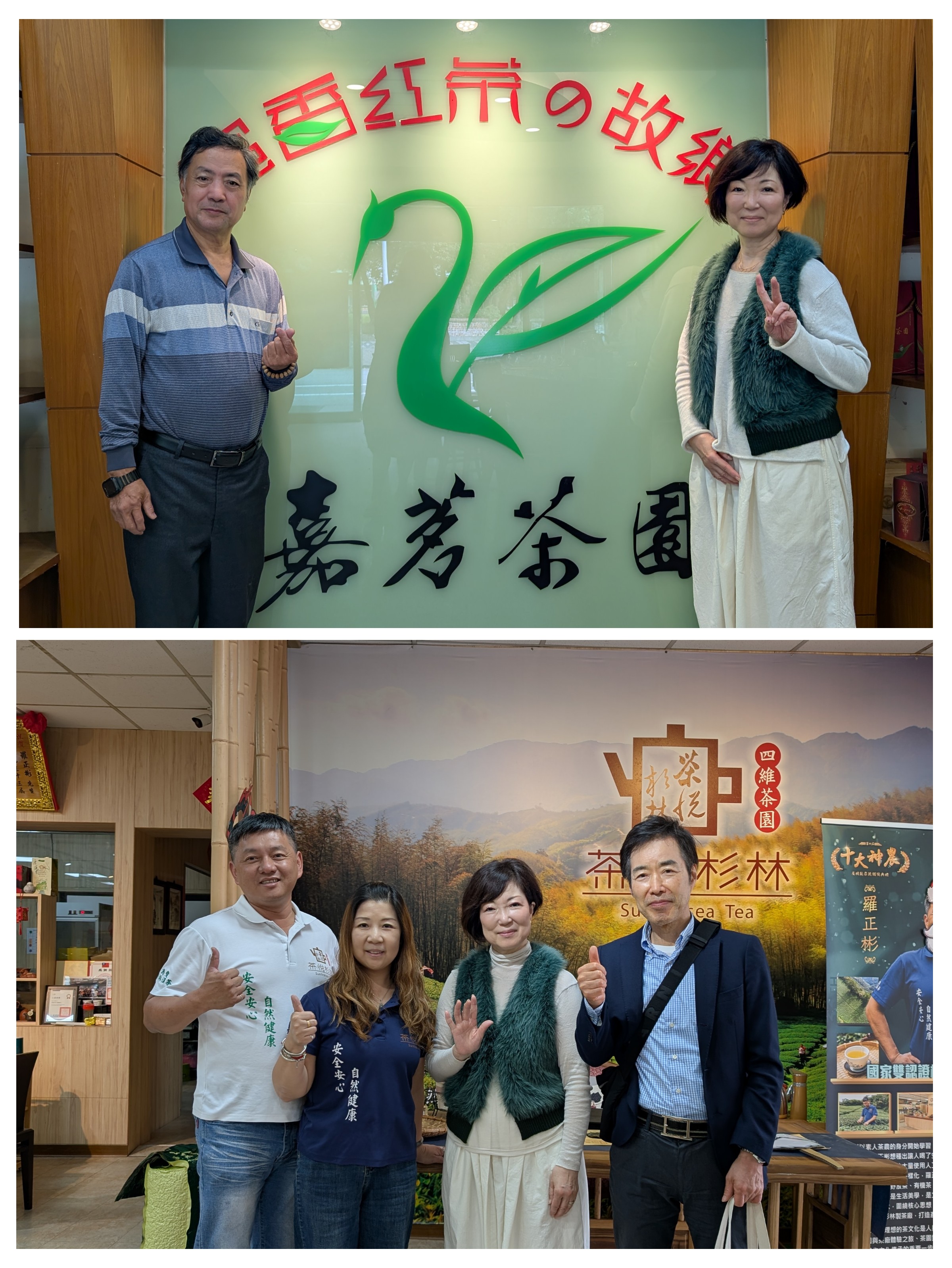 2025年12月、指定茶園リストの中から、二か所の茶園を訪問視察することができ、それぞれの茶園を見学、及び、各種の茶を試飲させていただき、大変勉強になった。 ■「嘉茗茶園紅茶故事館」(花蓮県瑞穂)は、蜜香紅茶発祥の地であり、蜜香紅茶の父と呼ばれる高肇昫氏とお会いすることができ、様々なレベルの紅茶を試飲した。ウンカによる茶葉の変化は蜜のような甘く芳醇な味わいを生み出している。無農薬・無肥料の茶園で年に5回摘採する。茶の品種は主に大葉烏龍であり、他は青心烏龍、金萱、台茶25号など。当日は晴天の中、茶園で女性たちが茶摘みを始めた。私も一緒に大葉烏龍の茶葉を摘んでみた。この時季(12月)にウンカに出会うことができ、驚きとともに感激した。 ■「茶悦杉林食農教育推廣中心」(南投県竹山)の茶園は杉林渓に位置している。無農薬・無肥料で育てている安心安全の茶畑を見学させていただいた。竹林、害虫、益虫、雑草などと共存し、全て自らの手で害虫や雑草を取り除いている。標高1,000mの茶園、土は柔らかく、土の香りも良い。茶園では10種類の品種のうち、青心烏龍、原生山茶、台茶18号、台葉23号の野放茶畑を見学した。年に一度、春にしか茶摘みをしない。長く養分を溜め、春に素晴らしい新芽が生まれる。店で9種類の茶を評茶させていただいた。甘く力強く香り豊かなお茶は、自然の中で育ったからこその味わい深さがあった。二か所の茶農家を訪問でき、大変貴重な経験をさせていただいた。関係の皆様に感謝いたします。
